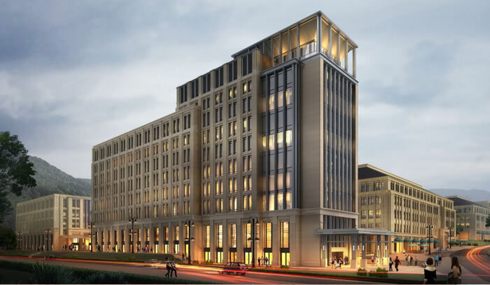 本項(xiàng)目位于重慶兩江新區(qū)龍盛片區(qū)總部基地中區(qū)、南區(qū)。用地面積55633.7m2,容積率1.5,建筑密度40%,綠地率30%。用地性質(zhì)為其他商務(wù)用地。本工程地上部分由十棟板樓,一棟點(diǎn)樓構(gòu)成。建筑以新古典主義風(fēng)格統(tǒng)制全局。以精到的比例、精致的細(xì)部賦予建筑以氣質(zhì);以架空、錯(cuò)動(dòng)、退臺(tái)等手法賦予建筑以表情。建筑表皮以花崗巖石材、高級(jí)外墻涂料等搭配使用,使建筑群體高檔而不失之于呆板。